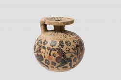 Image: Unknown artist, Corinth, Greece, Corinthian aryballos, c. 620–590 BCE, terracotta. La Trobe University, Trendall Collection of Antiquities, LTU1995.01. Gifted to La Trobe University by AD Trendall under the Australian Government Taxation Incentives for the Arts Scheme 1995