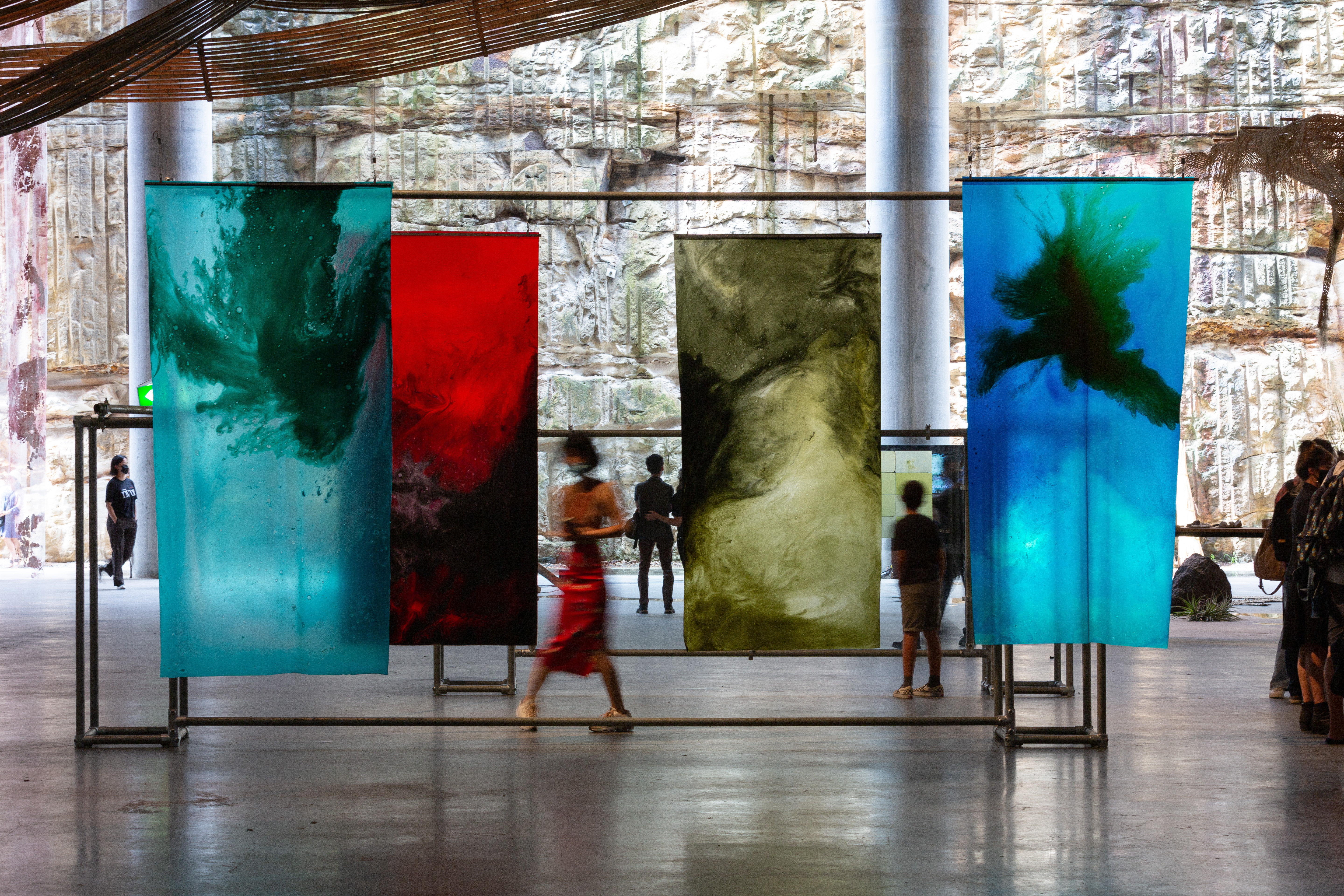 Image: Jessie French, The Myth of Nature –agaG1 (2022), installation view, 23rd Biennale of Sydney, ‘rivus’ at the Cutaway, Barangaroo. Photo: Jessica Maurer
