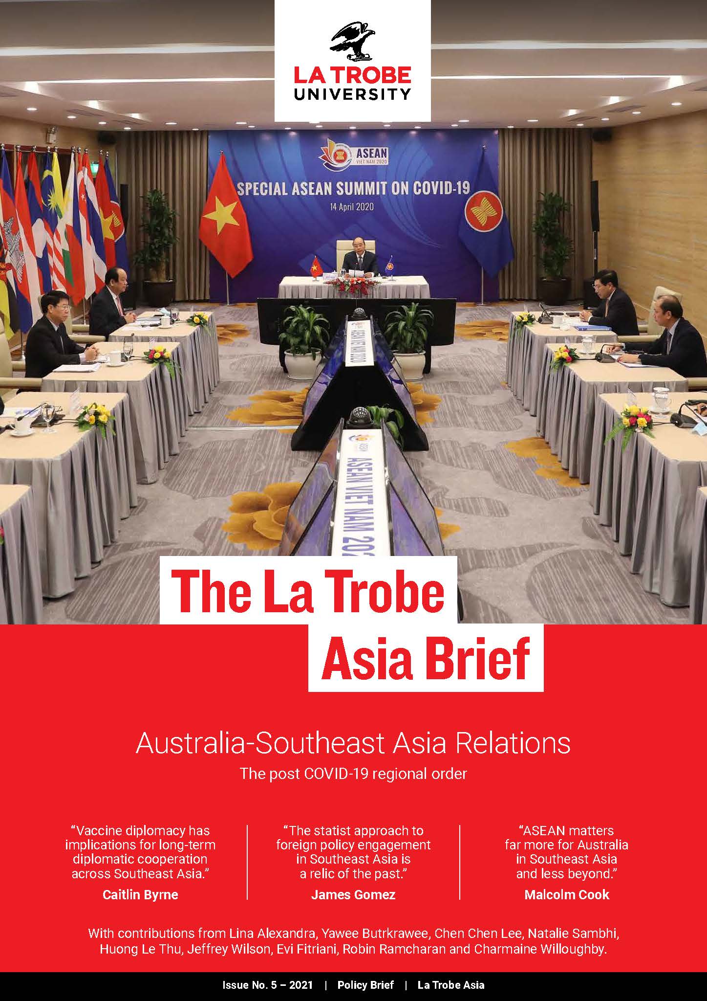 This publication is a product of a fruitful online academic dialogue held in February 2021 in collaboration between La Trobe Asia, Asia Centre, Centre for Strategic and International Studies Indonesia, Institute of Strategic and International Studies Malaysia, Griffith Asia Institute, Asialink, Perth US-Asia Centre and Generate Worldwide. It was proudly supported by the Australia-ASEAN council.