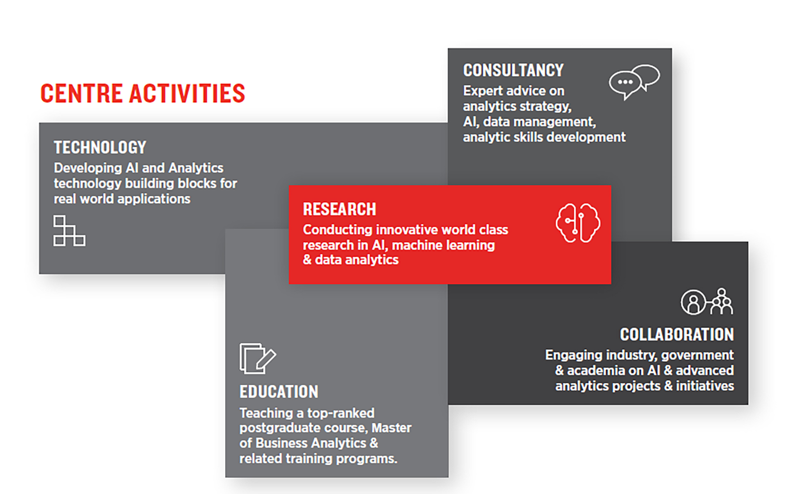 Our team consists of a group of AI and data science experts with outstanding research achievements coupled with many years of top industry experience. We build a fusion of operation and AI through the blend of our team expertise. Our team have designed and teach a top QS ranked Master of Business Analytics Course and also teach into the Bachelor of Business Analytics.