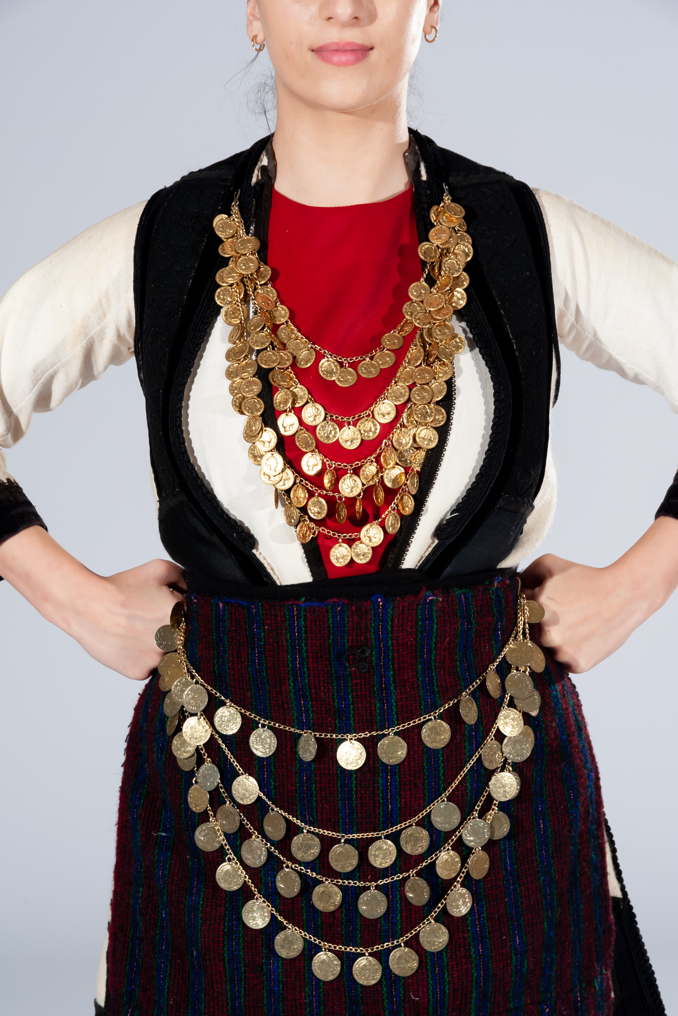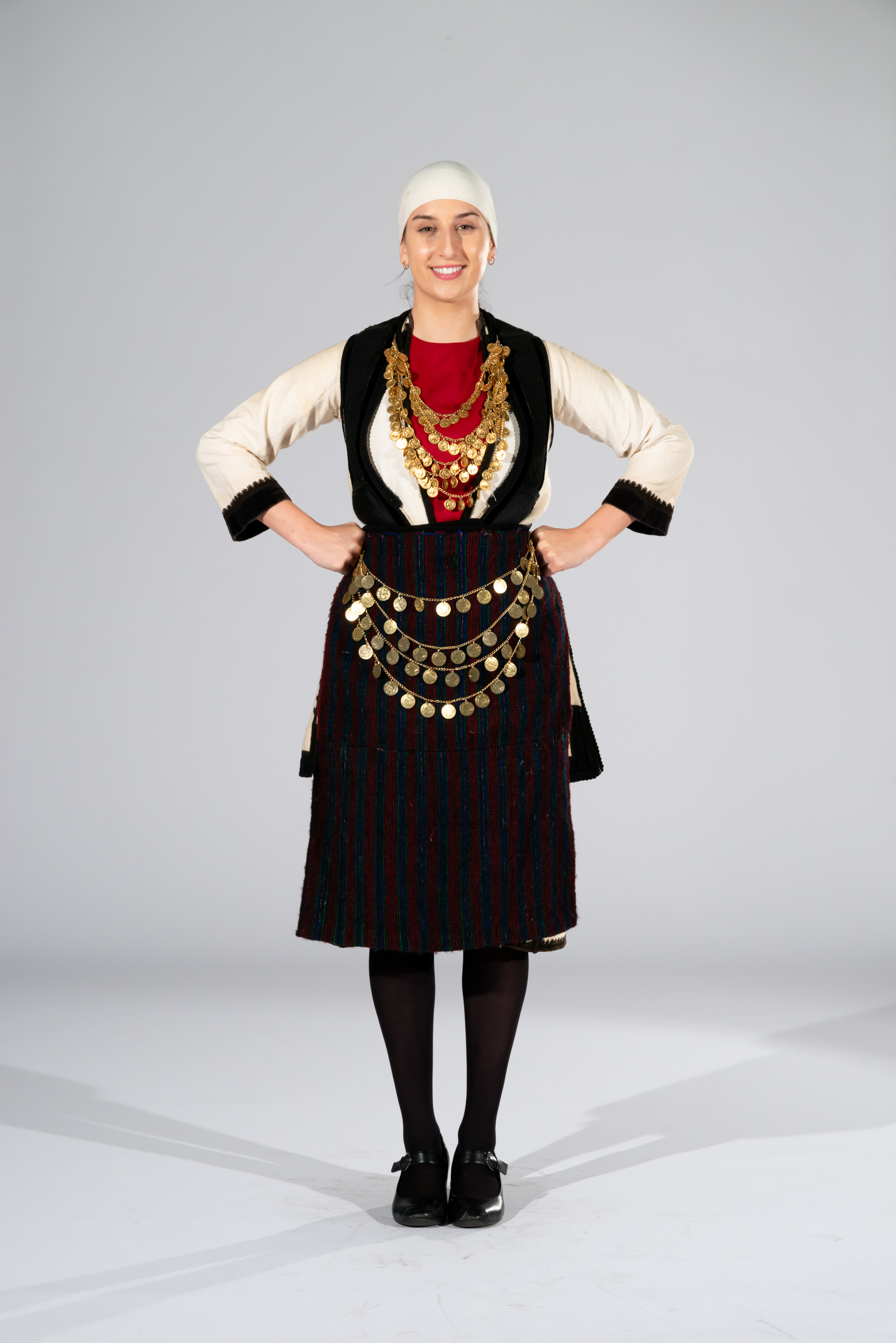 Pógias: a woolen waistband that comes in a range of colours. It wraps around the waist over the vest and is meant to help with back support like most waistbands in Greek costumes.