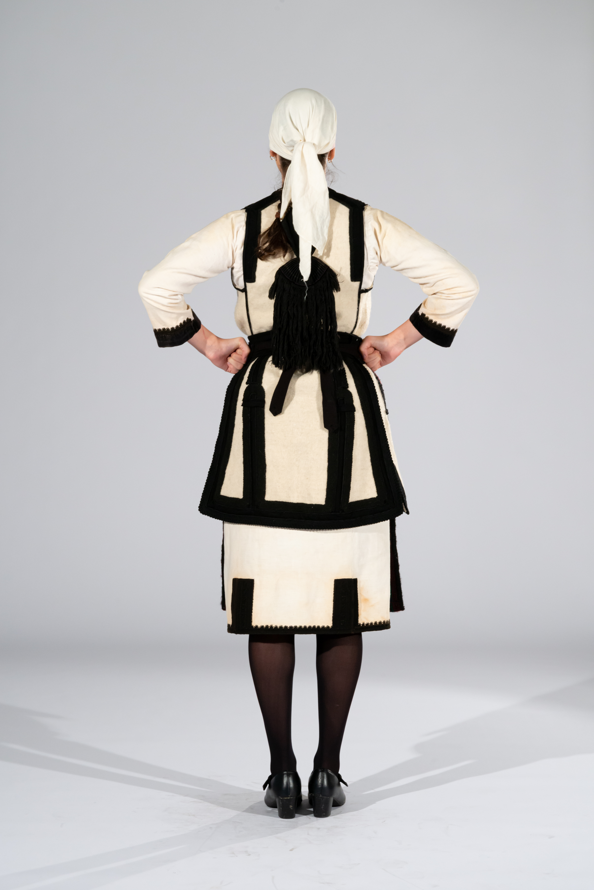 Ένα από τα λίγα παραδοσιακά αυθεντικά κομμάτια της συλλογής. Αυτή η γυναικεία φορεσιά είναι από την περιοχή της Πρώτης και είναι μια από τις πολλές παραλλαγές της παραδοσιακής Φλωρινιώτικης φορεσιάς.