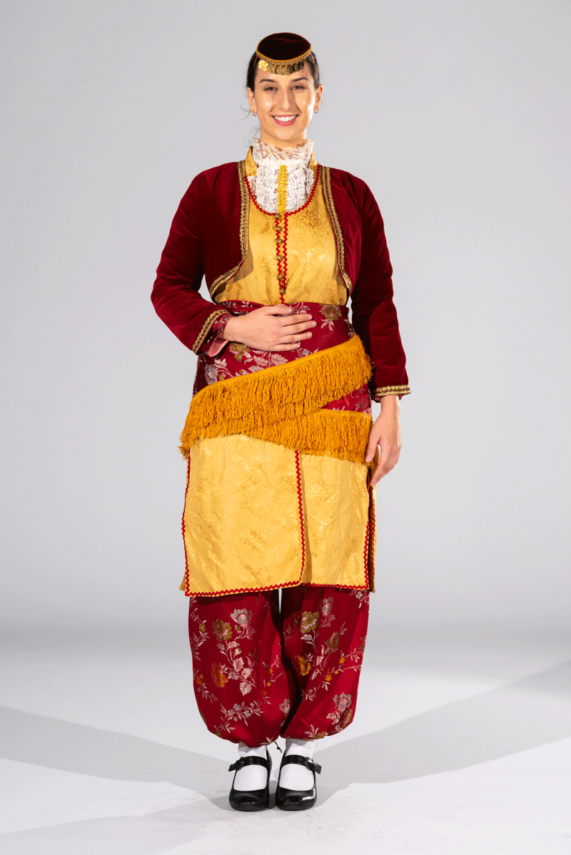 The female Pontian costume is generally referred to as “zipuna”, taking its name from the main garment in the costume. Just like Greece, Pontus consisted of many regions, each with its own variations. The costume pictured here is the most common version of the Pontian female dress.