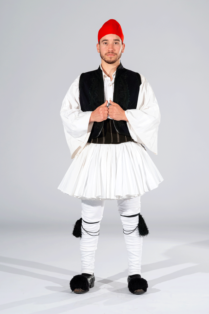 Tsolias is the national male costume of Greece. It comes from the region of Central Greece and is also the official uniform of the “Evzones”, the Greek Presidential Guard.