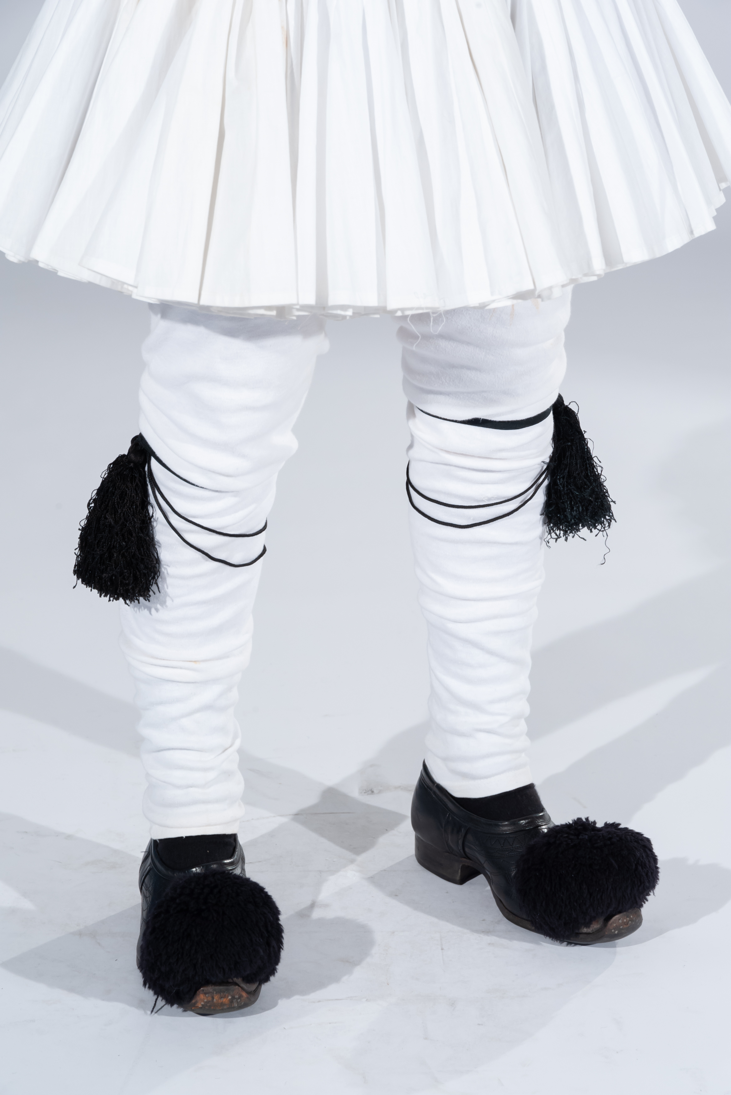 Πρόσθετα στοιχεία: κάτω από τη φουστανέλα οι άντρες φορούν λευκές κάλτσες και μαύρες καλτσοδέτες από τις οποίες κρέμονται δύο φουντίτσες.