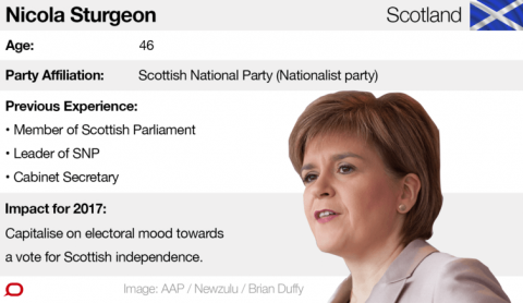 It may appear odd to identify as a person to watch in 2017 a political figure who came to prominence on the back of the losing campaign in the 2014 Scottish referendum. But Scottish First Minister Nicola Sturgeon is one of Britain’s most capable and strongly supported political leaders.