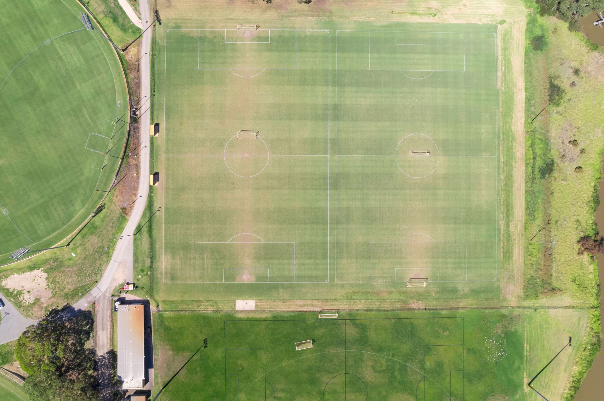 Located in the heart of the Sports Park Precinct, the Academy Fields are largely programmed for two side-by-side football (soccer) pitches.